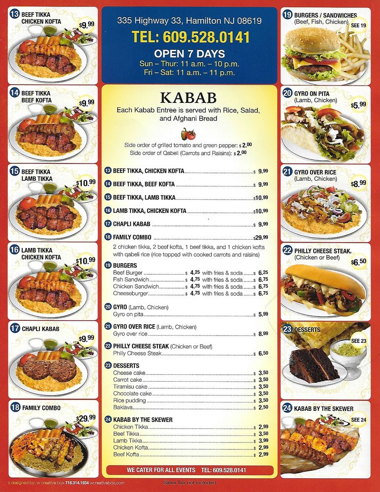 Located in Hamilton Township, NJ, Aryana Kabab & Grill offers a delightful Afghan-Halal cuisine experience. With a variety of appetizers like Bolani, Samosas, and Falafel, diners can start their meal on a tasty note. The menu also features burgers, sandwiches, and tempting desserts like Baklava. Customer reviews rave about the flavorful and well-seasoned dishes, with highlights including the mixed grilled meats, Kabuli Pulao, and Adana Kabab. The friendly staff and excellent service add to the overall dining experience. For those looking for authentic and tasty Afghan/Mediterranean cuisine in NJ, Aryana Kabab & Grill is a must-visit spot. Don't miss out on their unique dishes, generous portions, and reasonable prices.